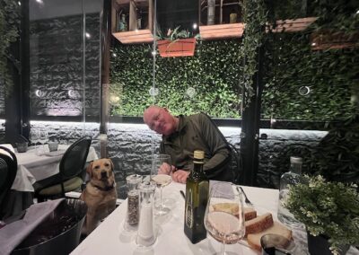 Nu het donker wordt is het tijd om Fabio gedag te zeggen én hier schuiven we dan ook maar gelijk aan voor een lekker wijntje én diner!