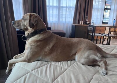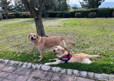 Den gaat in de ochtend richting het huis om nog wat maten op te nemen voor de binnendeuren én wat laatste zaken klaar te maken voor vertrek. Van doet hetzelfde alleen dan in het appartement. Op Il Casale zit ook een andere labrador 🐶. Eigenlijk mag deze niet los maar als Soof erbij is mag dat wel en dat betekent voor hun; Nog anderhalf uur feest 🥳!