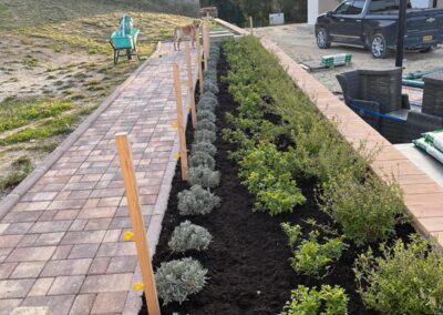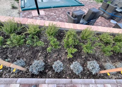 Na een ‘vrije’ regenachtige Zondag, vandaag weer aan de gang. Regen, en zeker veel regen, is nooit leuk, maar wel goed om de grond in te laten klinken. En dat heeft het goed gedaan. Dus we kunnen weer aanvullen rondom het zwembad!