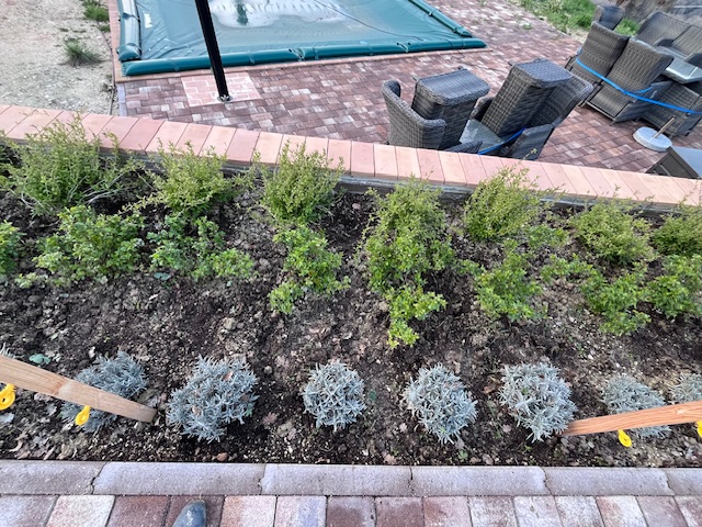 Na alle woeste arbeid van gisteren, wilde het opstaan vanmorgen niet zo vlotten… Eenmaal op gang, weer mooie resultaten geboekt. Nieuwe Cypres 🌲 geplant en ook de beplanting 🌿 rond de zwembad pomp zit erin. Op de helling achter het zwembad een aantal Prunus Serulata gepland. Dat gaat een mooi kleur contrast geven tegen al het groen. Ff bijkomen in het zonnetje en weer door 💪🏼
