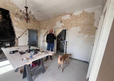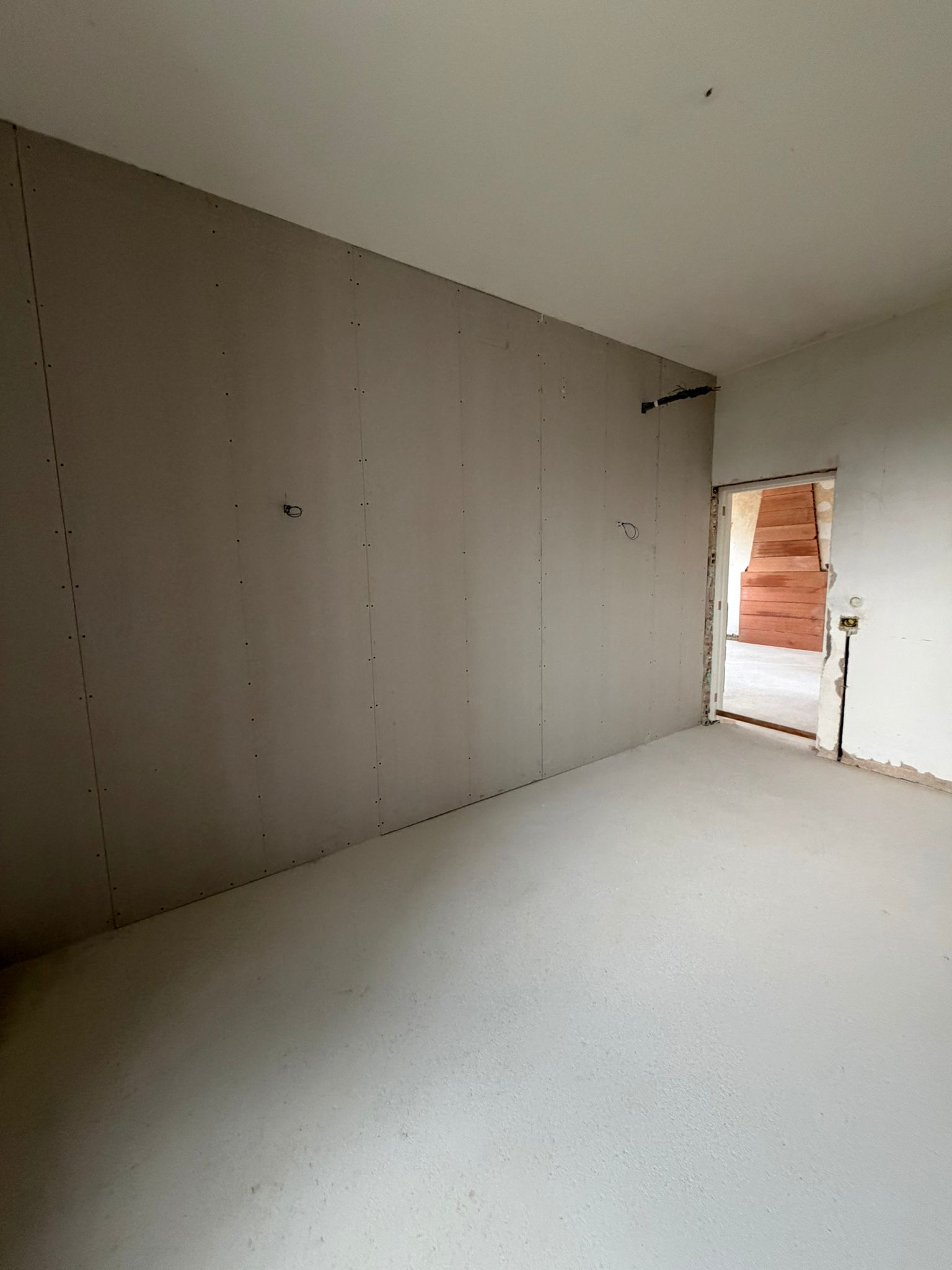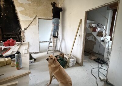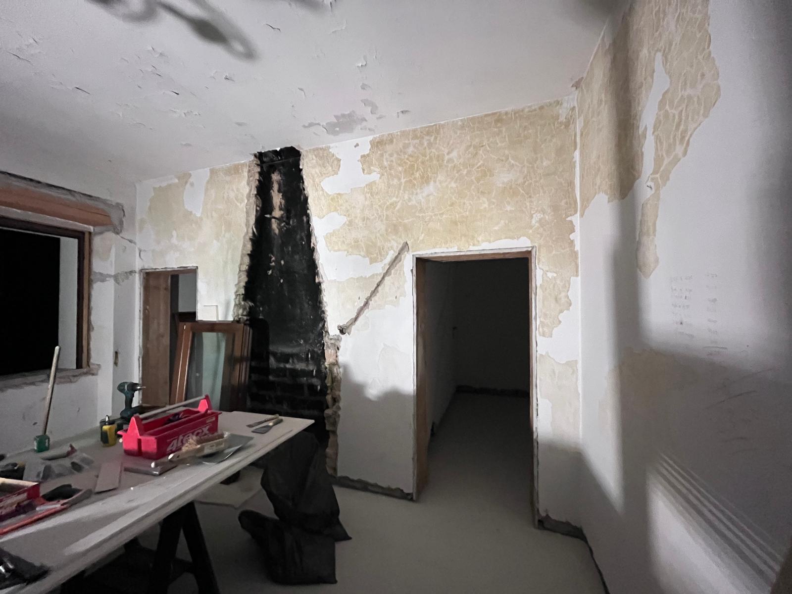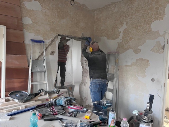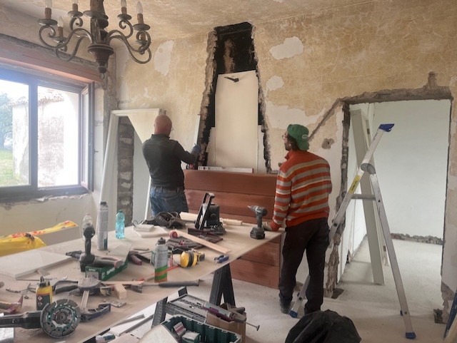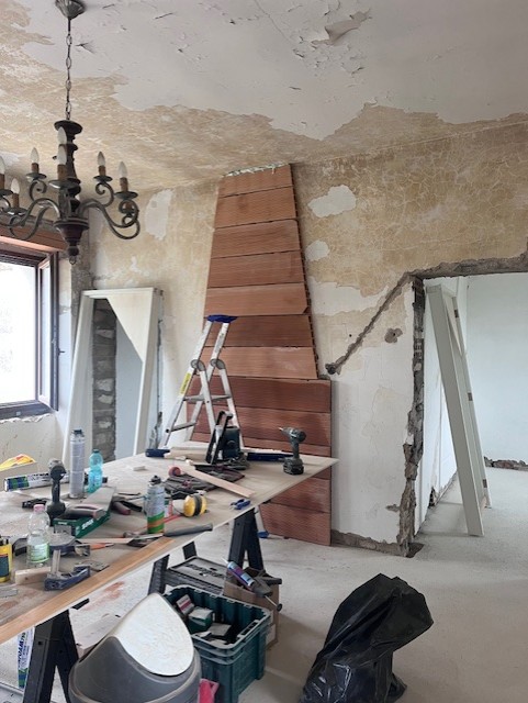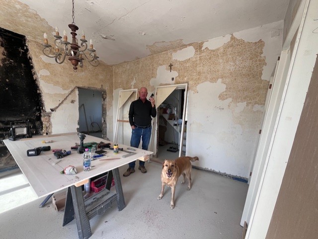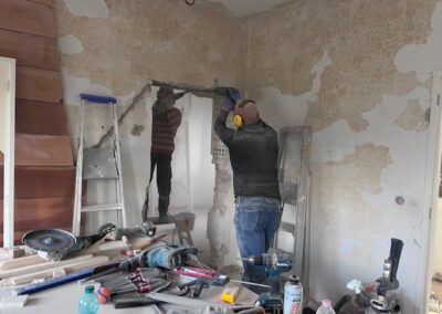 Van begint aan het afsteken van de stuclaag en Den is bezig met alles wat er nog moet gebeuren!