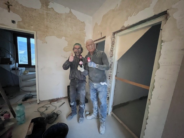 Ivano, onze stucadoor, brengt Den in de middag een bezoek en geeft ons nog even wat “huiswerk” voor de komende dagen.