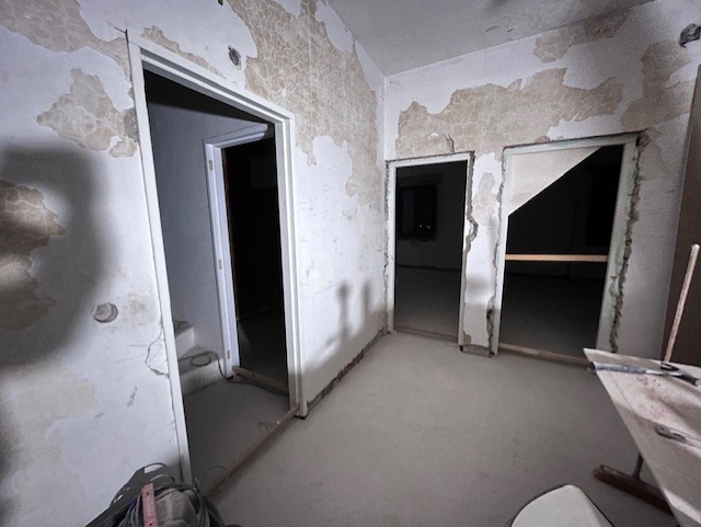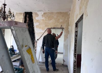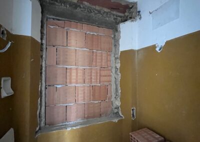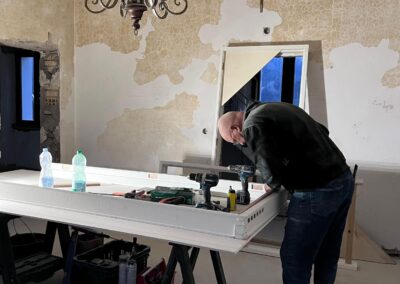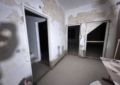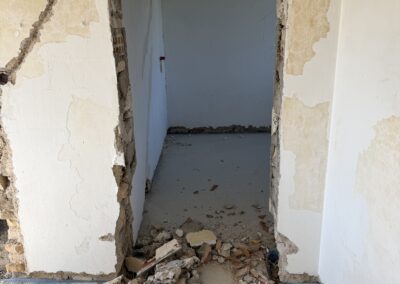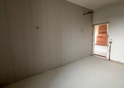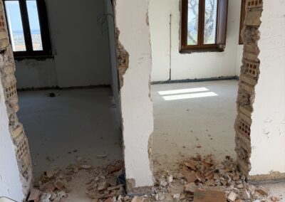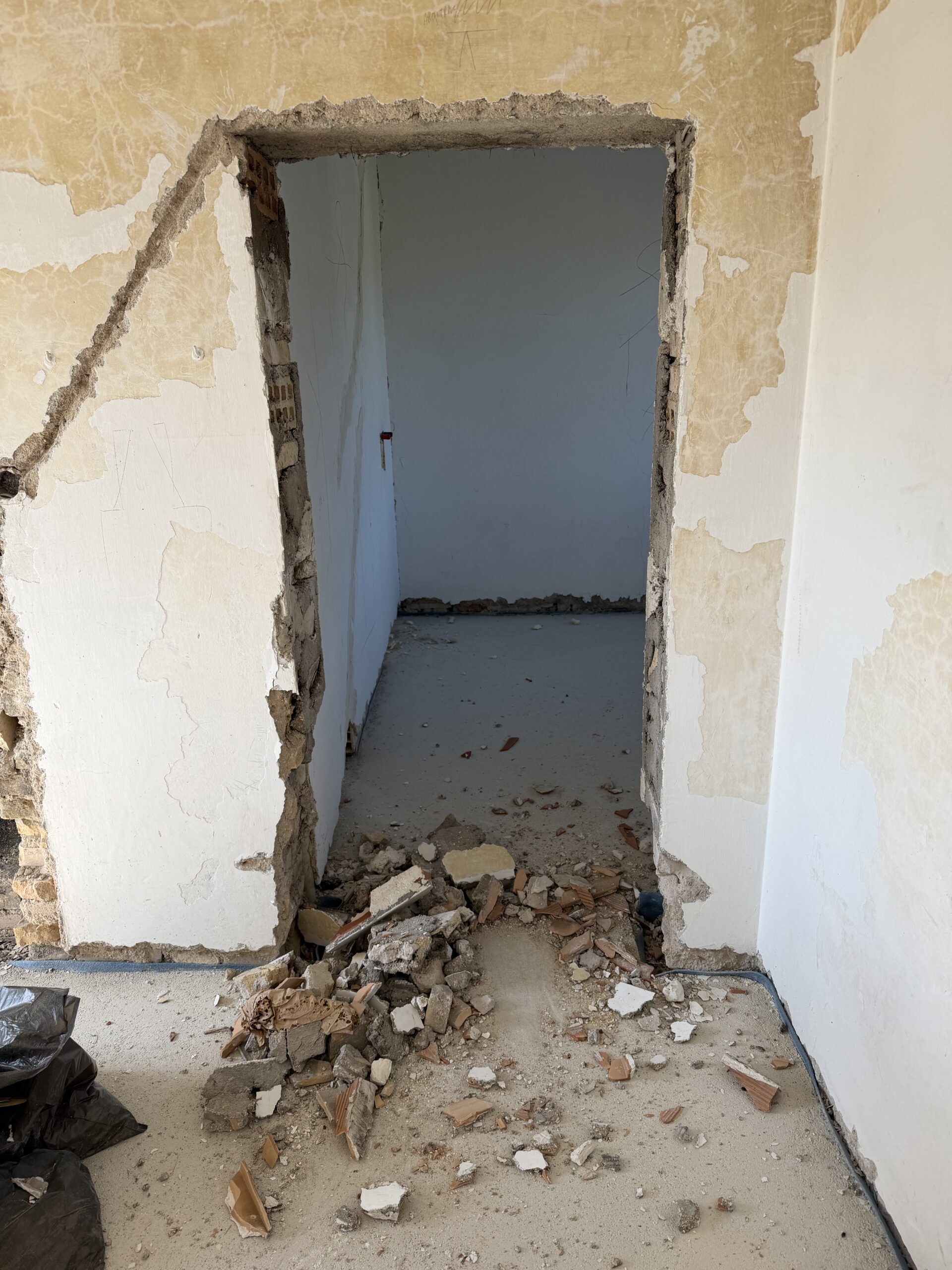 Laatste zooi van de eerste verdieping gesloopt. In overleg met Stefano gekeken hoe en wat met betrekking tot de nieuwe deurkozijnen te installeren. De oude waren allemaal met deuren van 190cm. Daar passen we niet onderdoor…