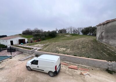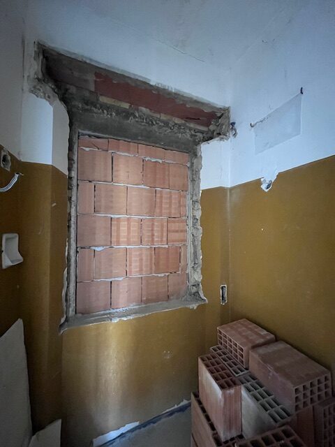 Stefano metselt de oude schoorsteen dicht én zet het raam, wat we aan de buitenkant ook dicht hebben laten stucen, dicht. Tegelijkertijd wordt er ook nog wat reparatiewerk aan de muren uitgevoerd en het onkruid bij de nieuwe beplanting rondom de zwembadpomp weggehaald..