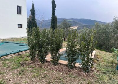Op het land bevond zich een grote groep olijfbomen. Om in de toekomst hier wat makkelijker bij te kunnen, zijn de meeste hiervan de afgelopen periode verplaatst naar het terrein op de heuvel bij het huis. Dit is natuurlijk een stuk praktischer (opa wordt ook langzaam wat ouder…) Er zijn nog zo’n 5 bomen blijven staan. Deze kunnen we gebruiken voor als er een boom niet ‘aan slaat’, of we zoeken er een mooi ander plekje voor, ruimte genoeg 🙂