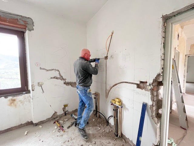 In de tussentijd maken we zelf de nieuwe stroomaansluiting in orde (komt in de schuur) en treffen we de voorbereidingen voor het volgende gedeelte van de renovatie; Casa Principale!