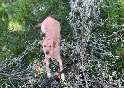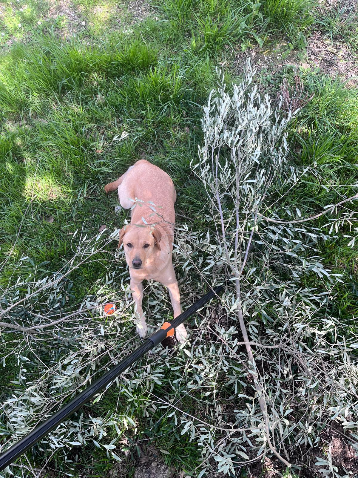 Soof ligt klaar als ontvangst comité voor de dames. En ik alvast in de voorbereiding voor de 2e olijven pluk!