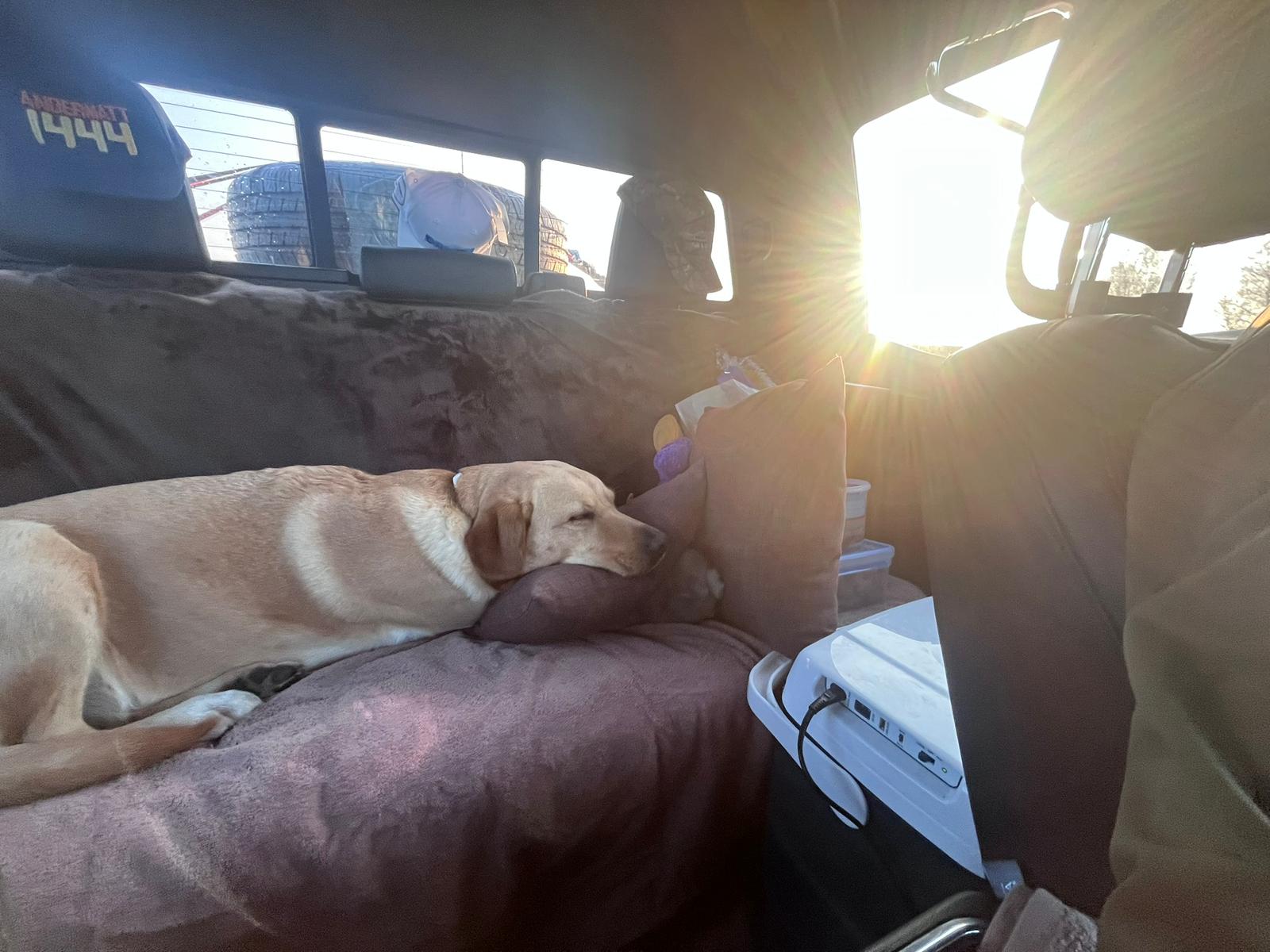 Tegen de tijd dat Den terugkomt liggen ze beide compleet uitgeput met een botje in het gras. De laatste tassen gaan de auto in en na een ☕️ koffietje bij Bar Roma zetten we koers richting NL!