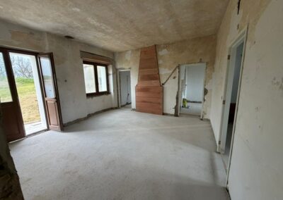 De zwijnenstal heeft geen letterlijke betekenis meer, dus zijn we beland in de spreekwoordelijke zwijnenstal! Geeft wel gelijk veel licht en ruimte in wat straks de woonkamer/keuken moet gaan worden. Morgen nog een dagje puin scheppen….